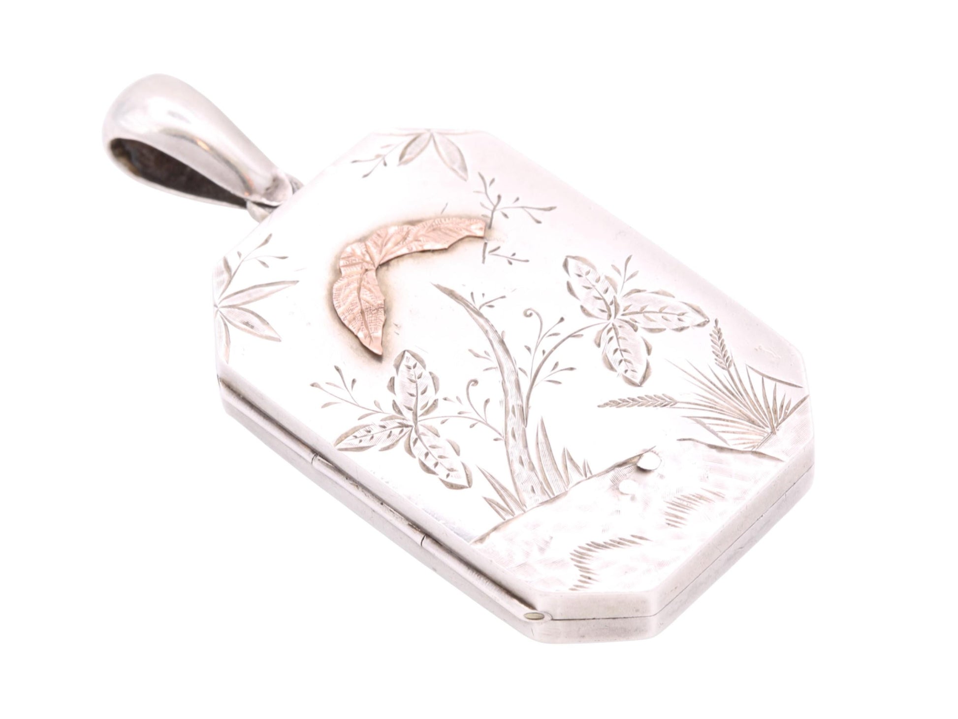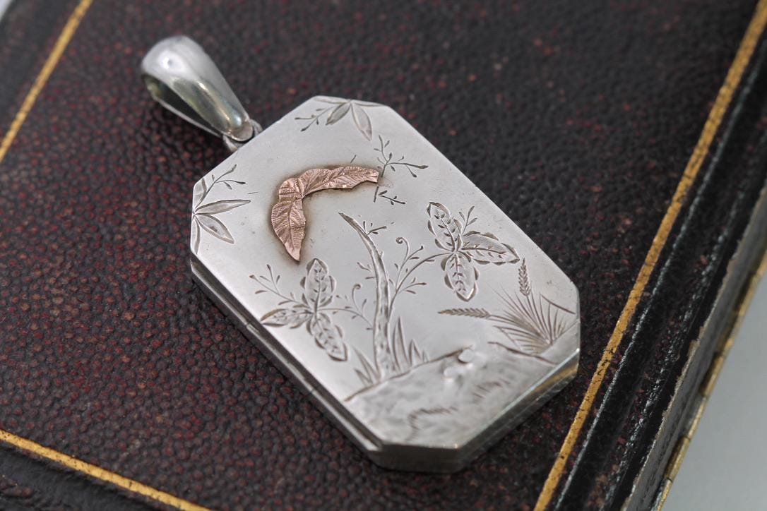 Antique Sterling Silver Aesthetic 9ct Gold Locket, 1880