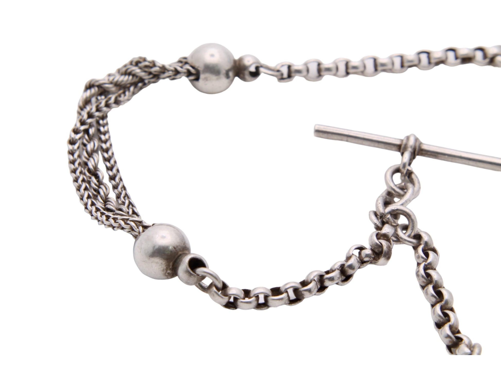 This exquisite antique Albertina is crafted from sterling silver, showcasing the remarkable craftsmanship of the Edwardian era. Originally designed as a watch chain, this versatile piece doubles as a stylish bracelet, making it a unique and practical addition to your jewellery collection.