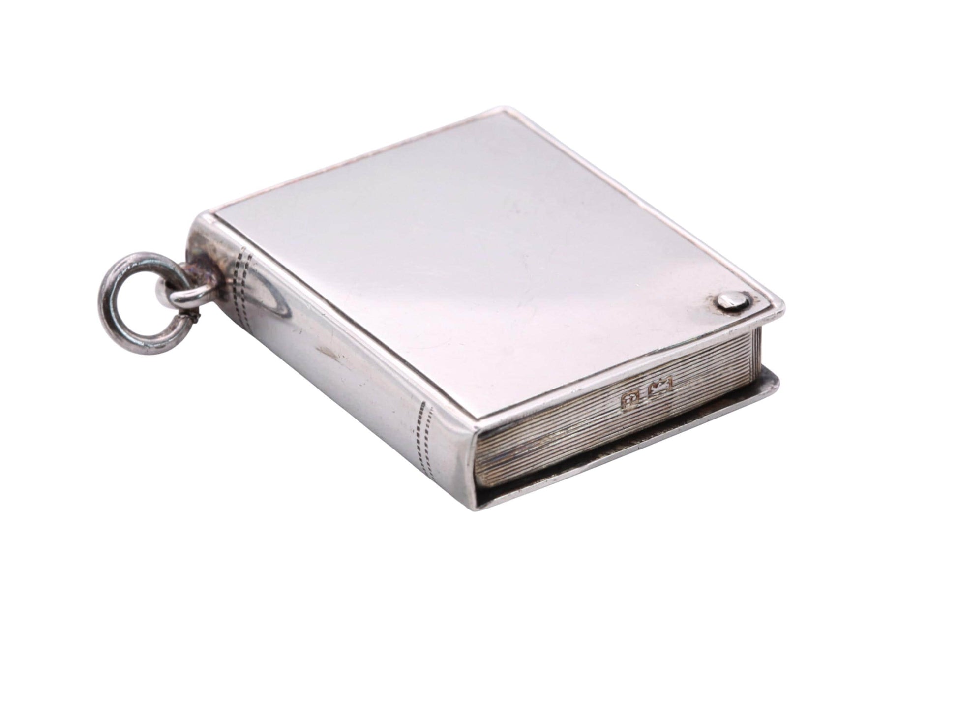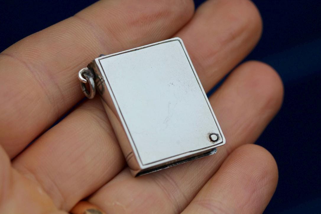 Antique Sterling Silver Book Shaped Pendant Stamp Case, 1903