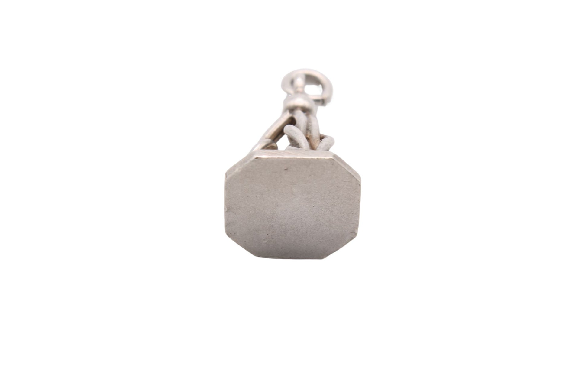 The intricate silver mount has a knot type design with an un-crested base. It would have no trouble adding some character and sophistication to any necklace or watch chain. A lovely piece of antique silver.
