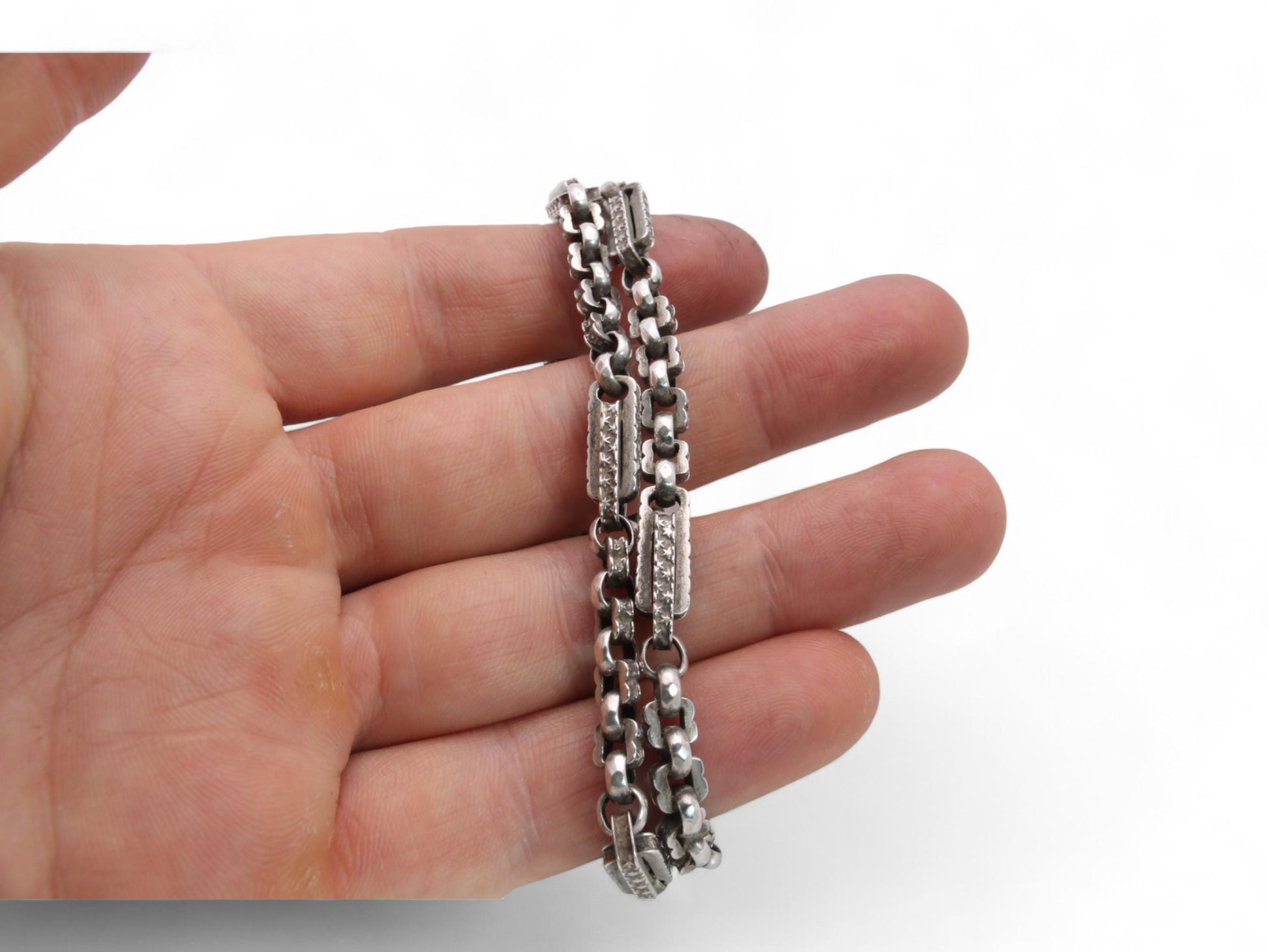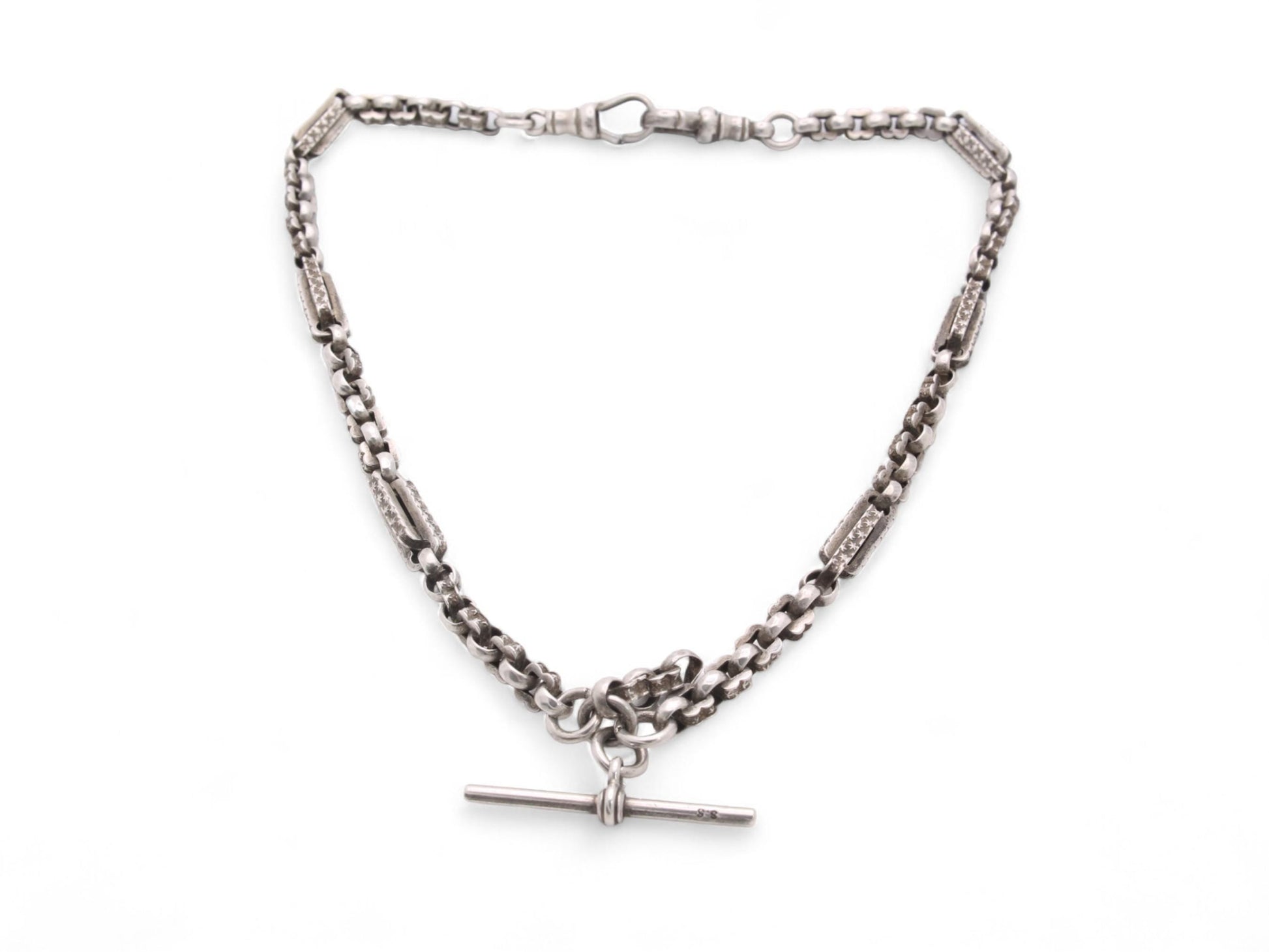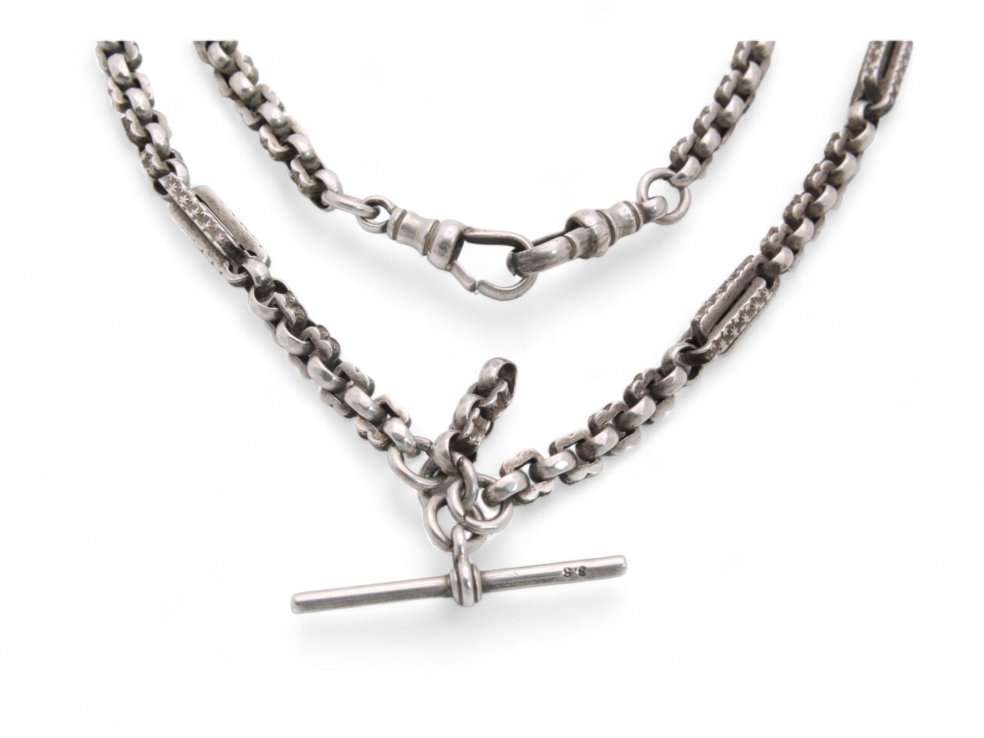 Antique Sterling Silver Fancy Star Link Double Albert Chain, 15.75"