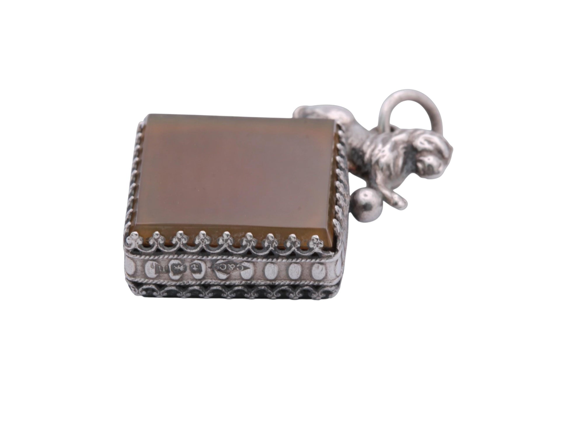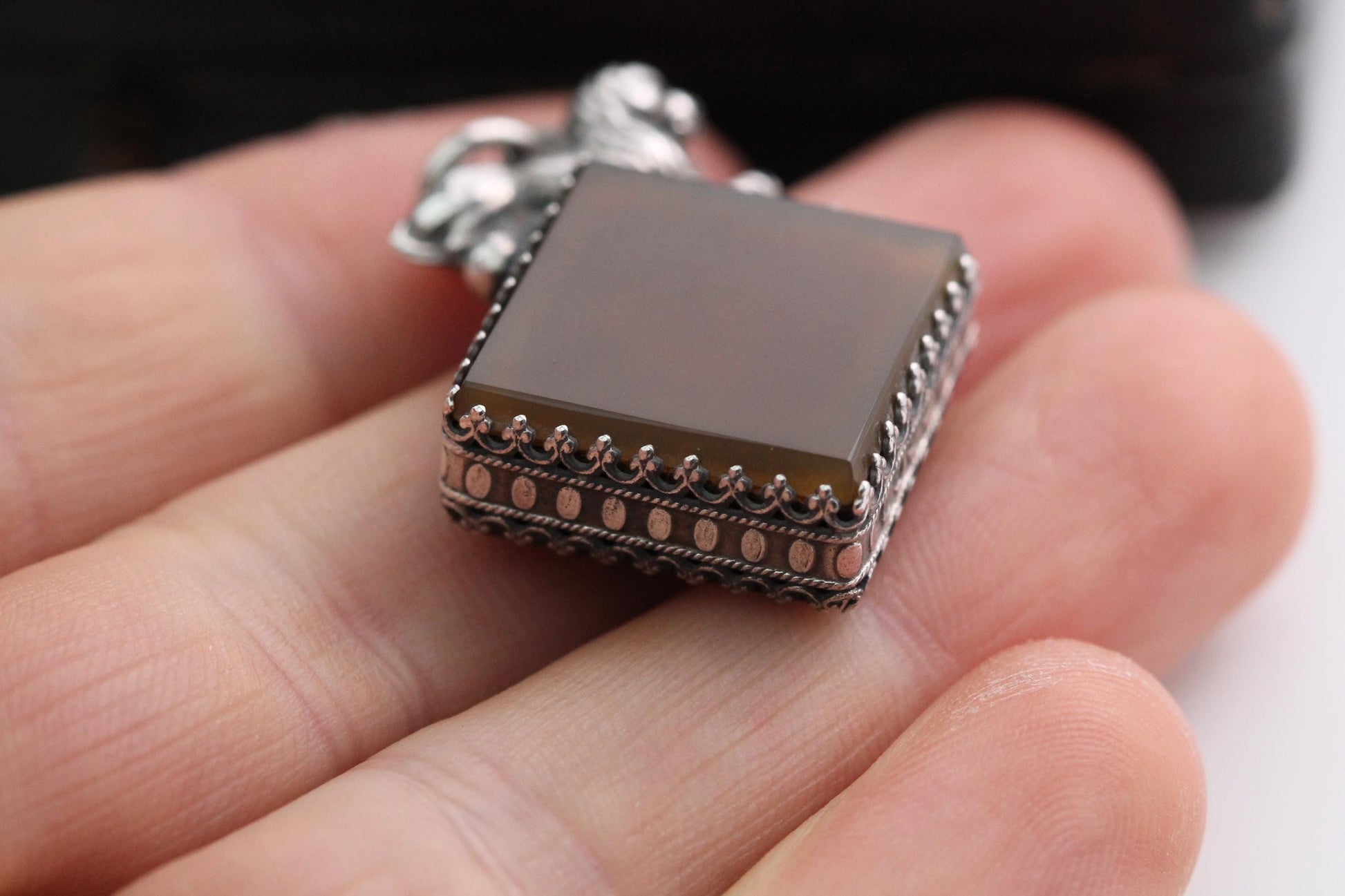 Antique Sterling Silver Lion Pendant, Bloodstone & Carnelian, 1912