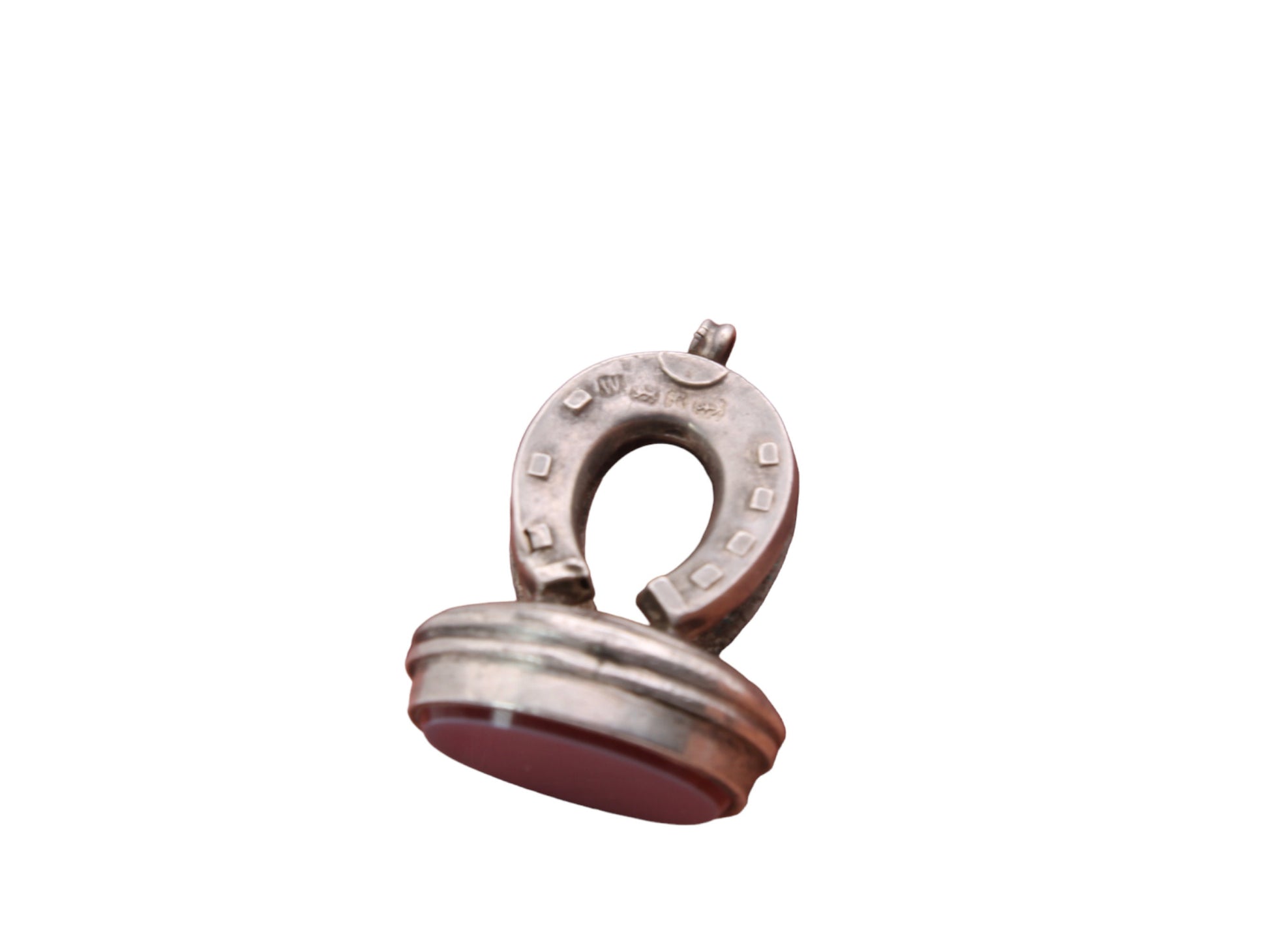 An exquisite antique Victorian sterling silver pendant dating back to 1885. This beauty has a detailed lucky horseshoe mounted upon the top. It is expertly crafted with a stunning lilac agate at is base.
