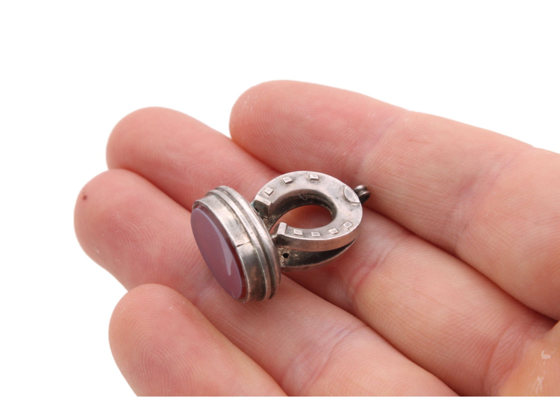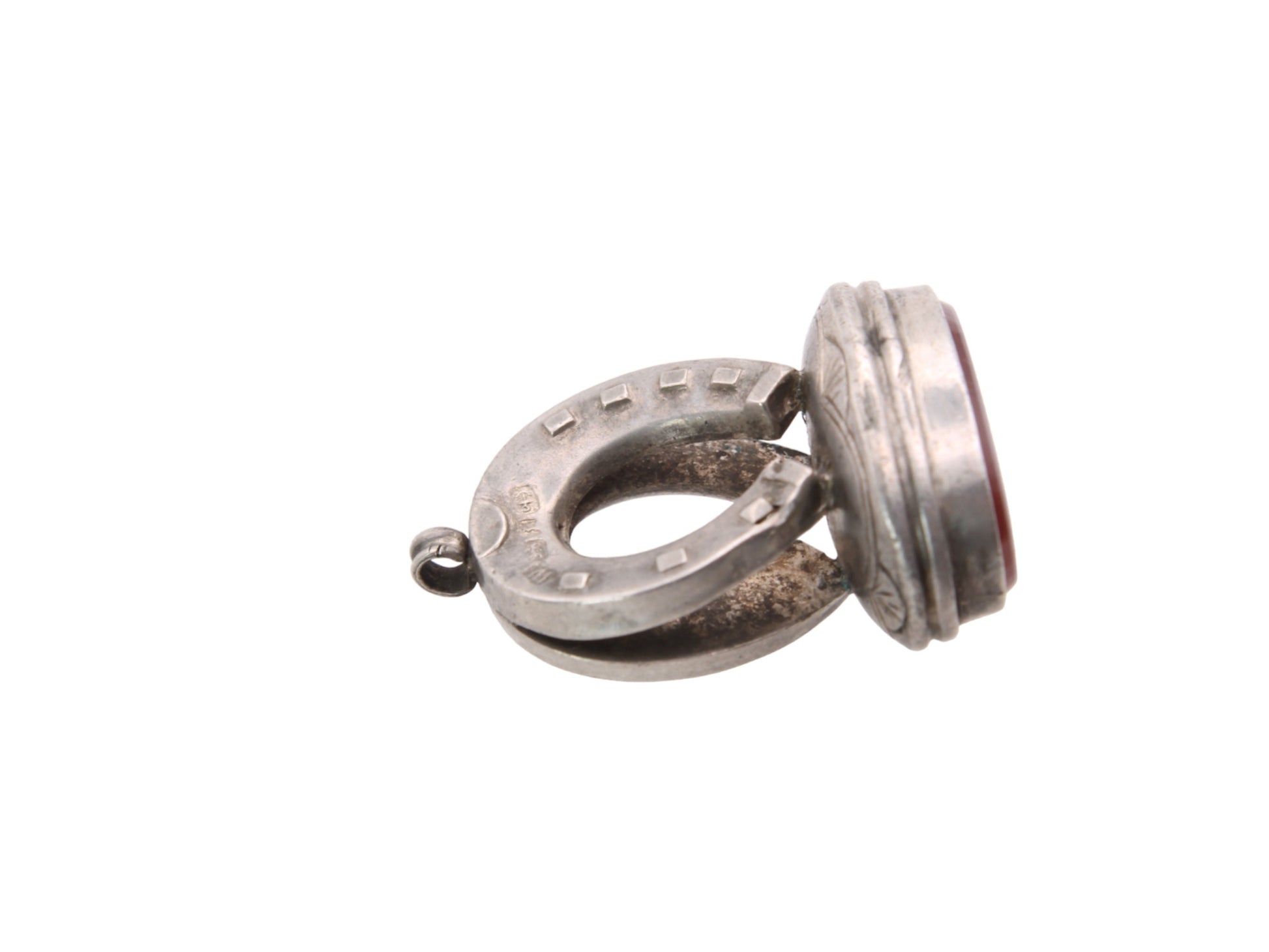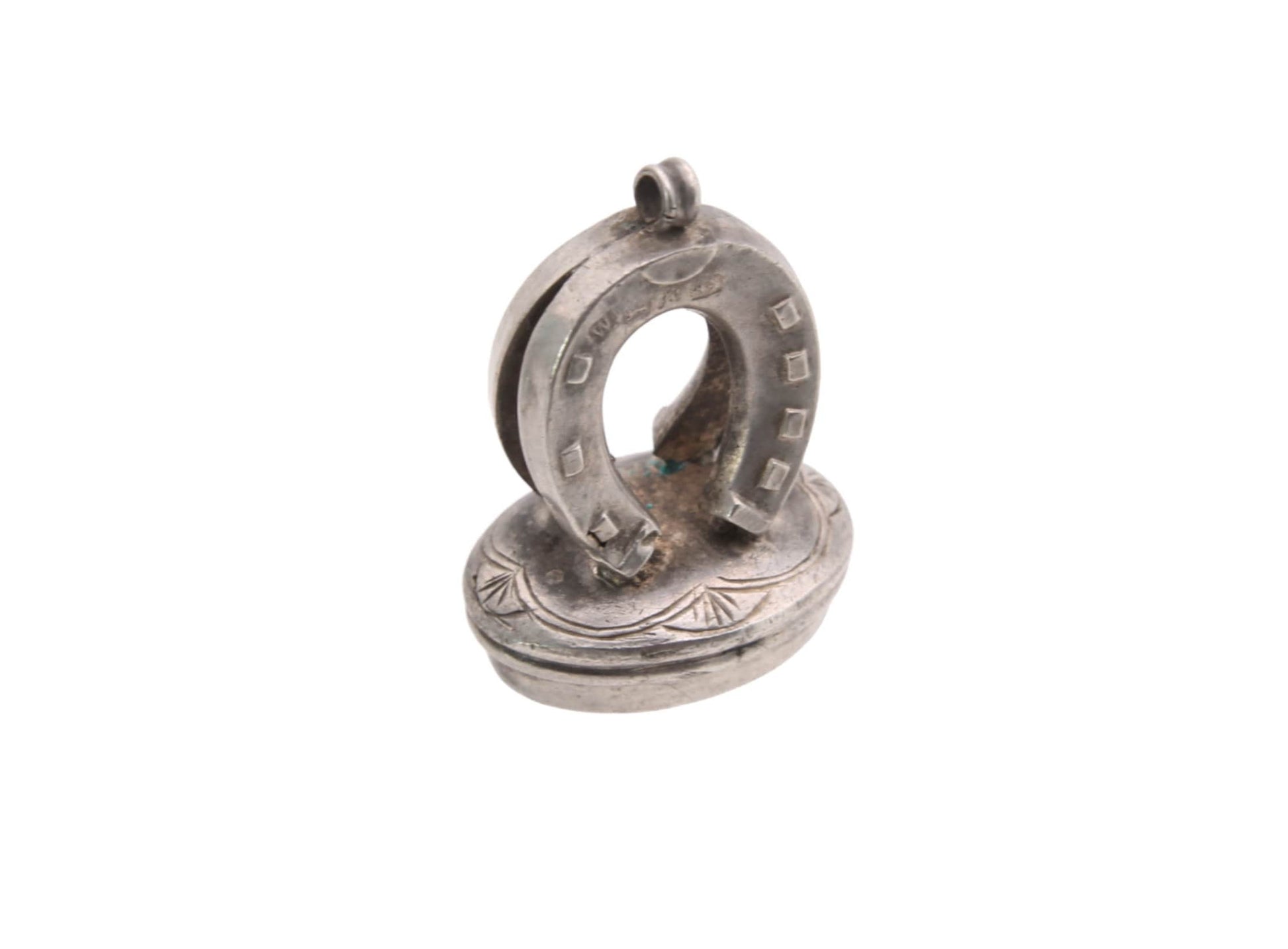 Antique Sterling Silver Lucky Horseshoe Lilac Agate Pendant
