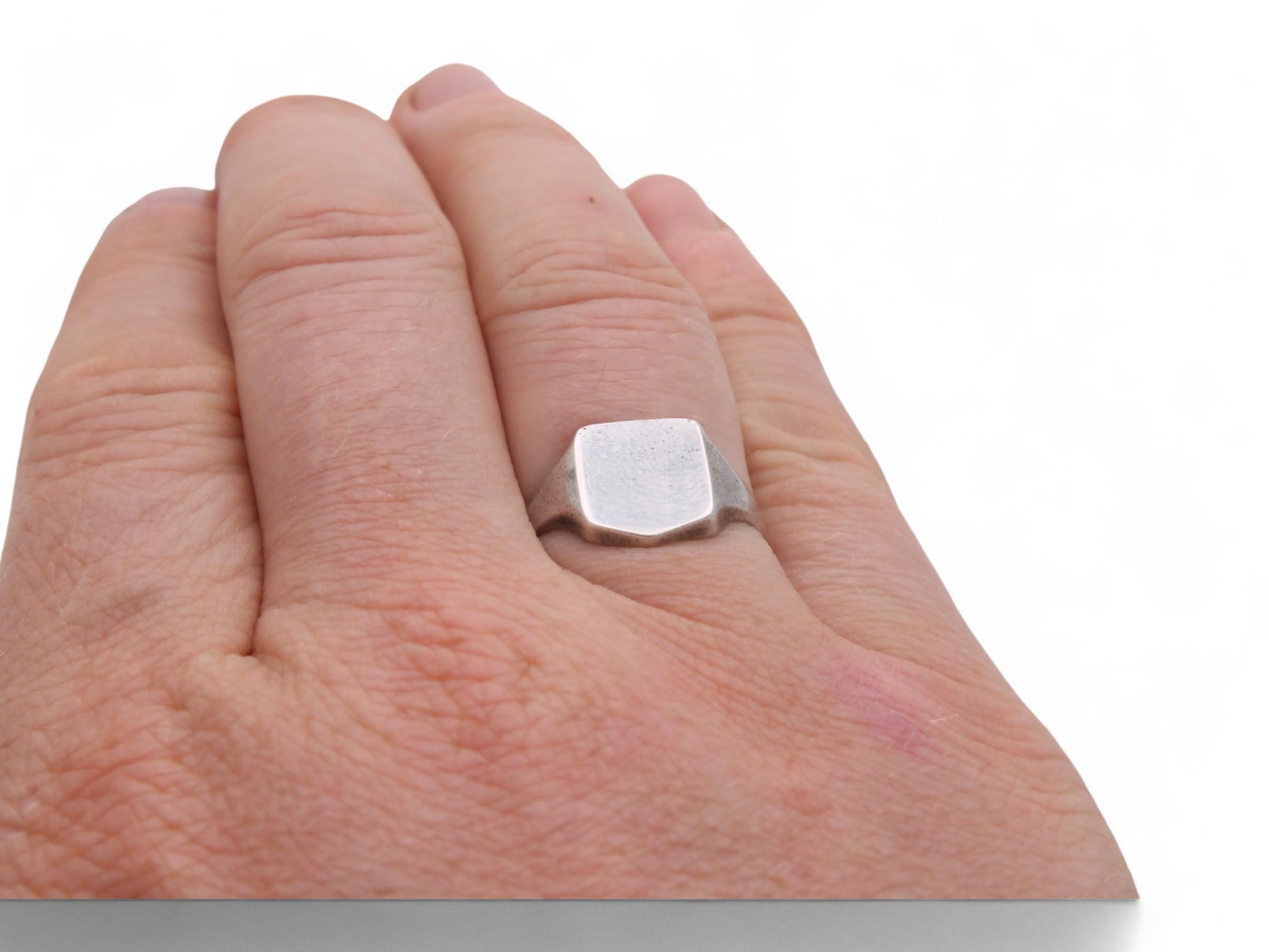 This antique sterling silver shield signet ring, hallmarked for 1892, carries the timeless elegance of the Victorian era. The shield-shaped face gives it a bold and distinguished look, perfect for adding a touch of history and character to your style.