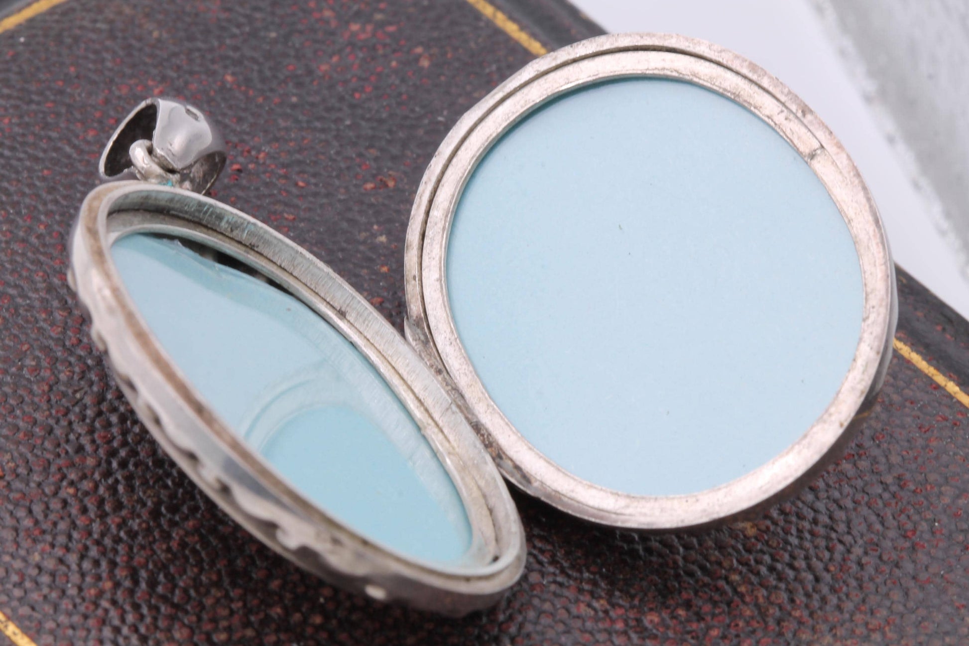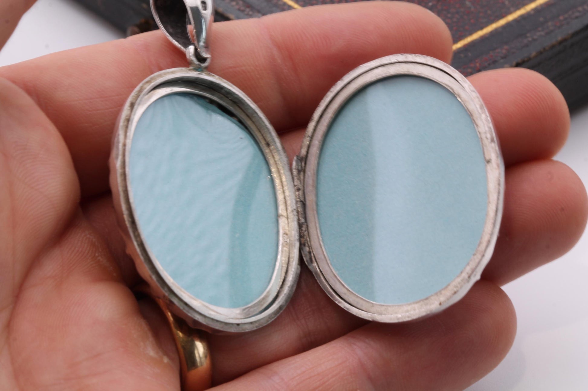 The locket opens to reveal space for two photographs or keepsakes and retains two clear acrylic panels ready for use.
