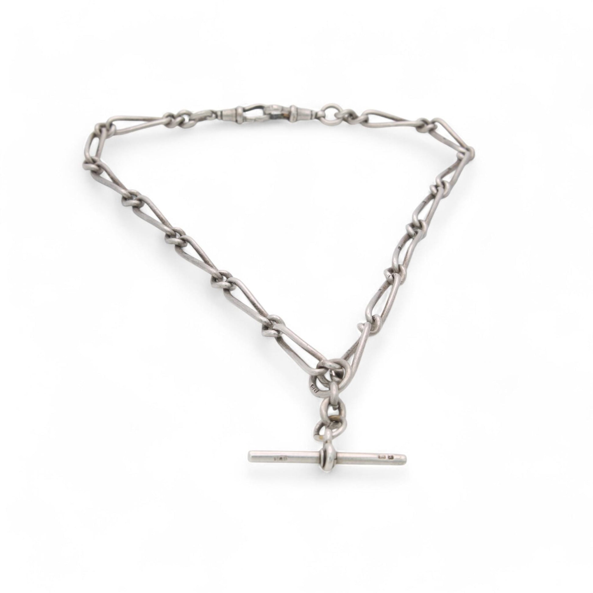 Antique Sterling Silver Twisted Trombone Link Chain Necklace, 14.75"
