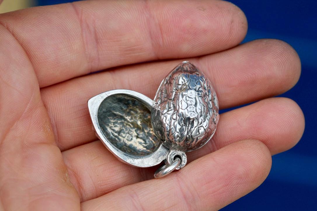 Antique Sterling Silver Walnut Pendant Locket, 1881