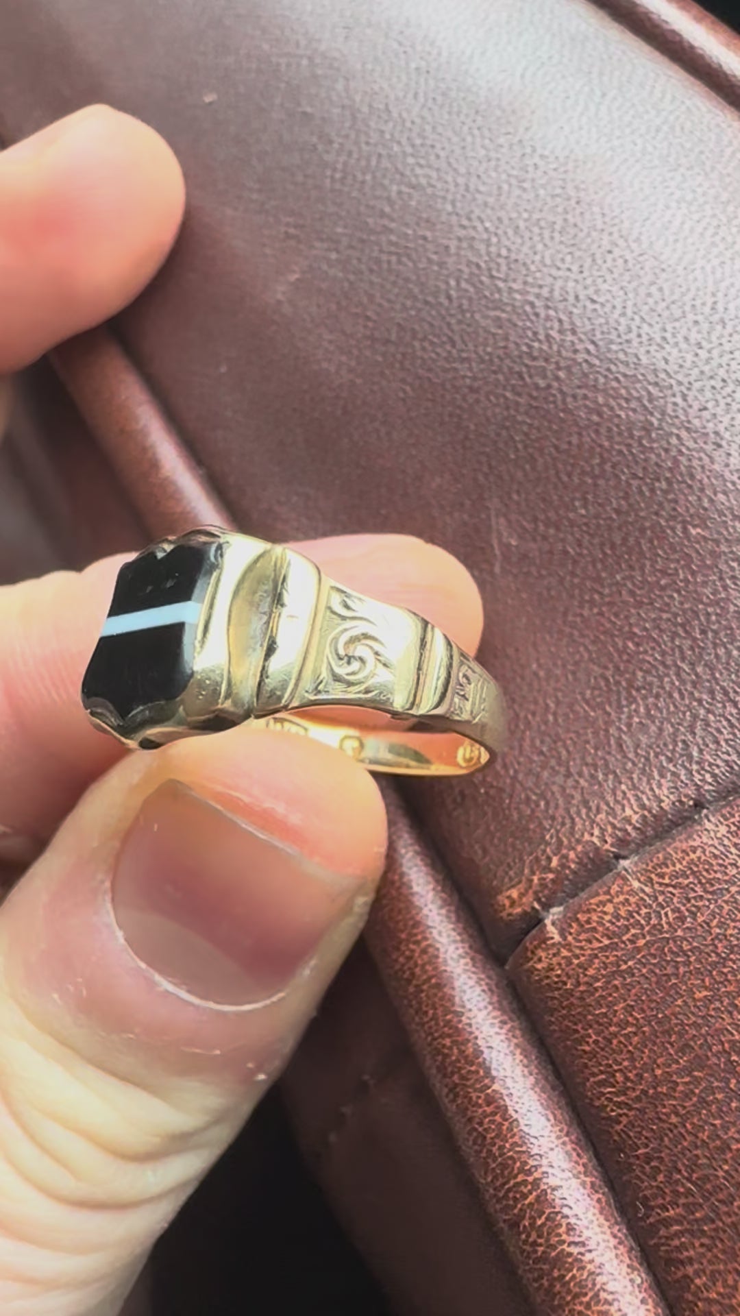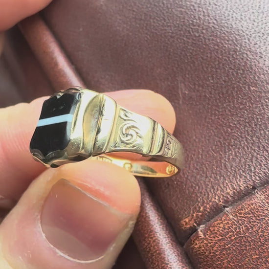 Antique Victorian 18ct Gold Banded Agate Shield Signet Ring, 1845