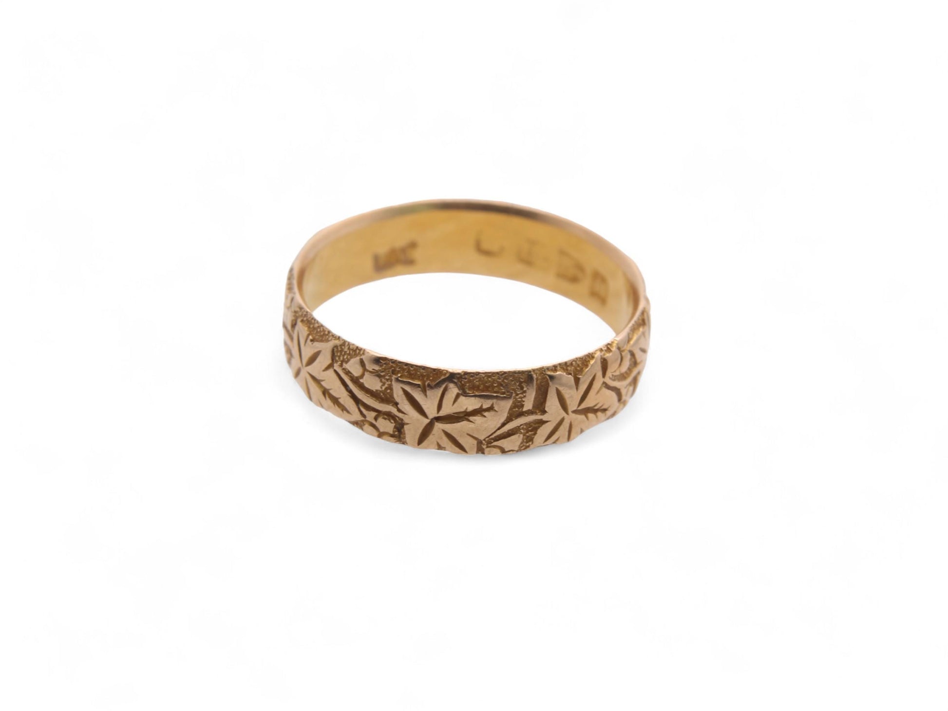 Antique Victorian Chased Ivy 18ct Gold Ring, 1895