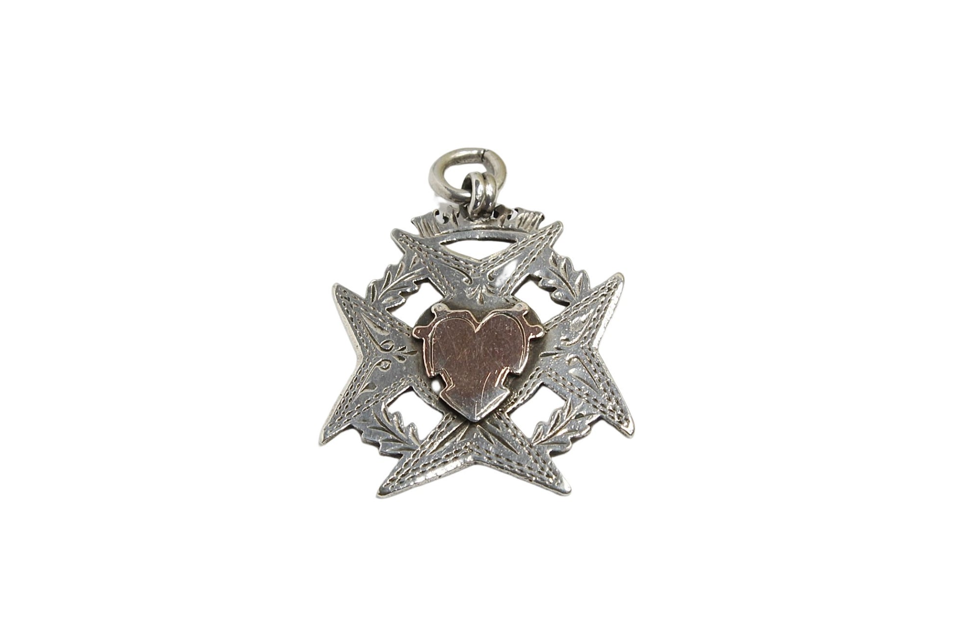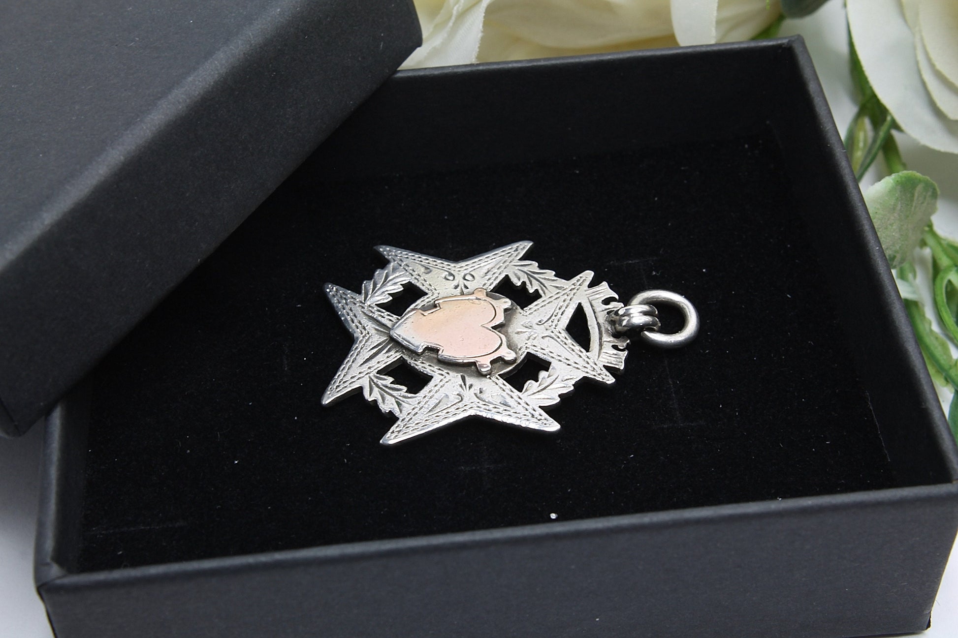 A lovely quality antique Victorian Silver and gold pendant. A decorative piece with clean hallmarks dating back to 1898.