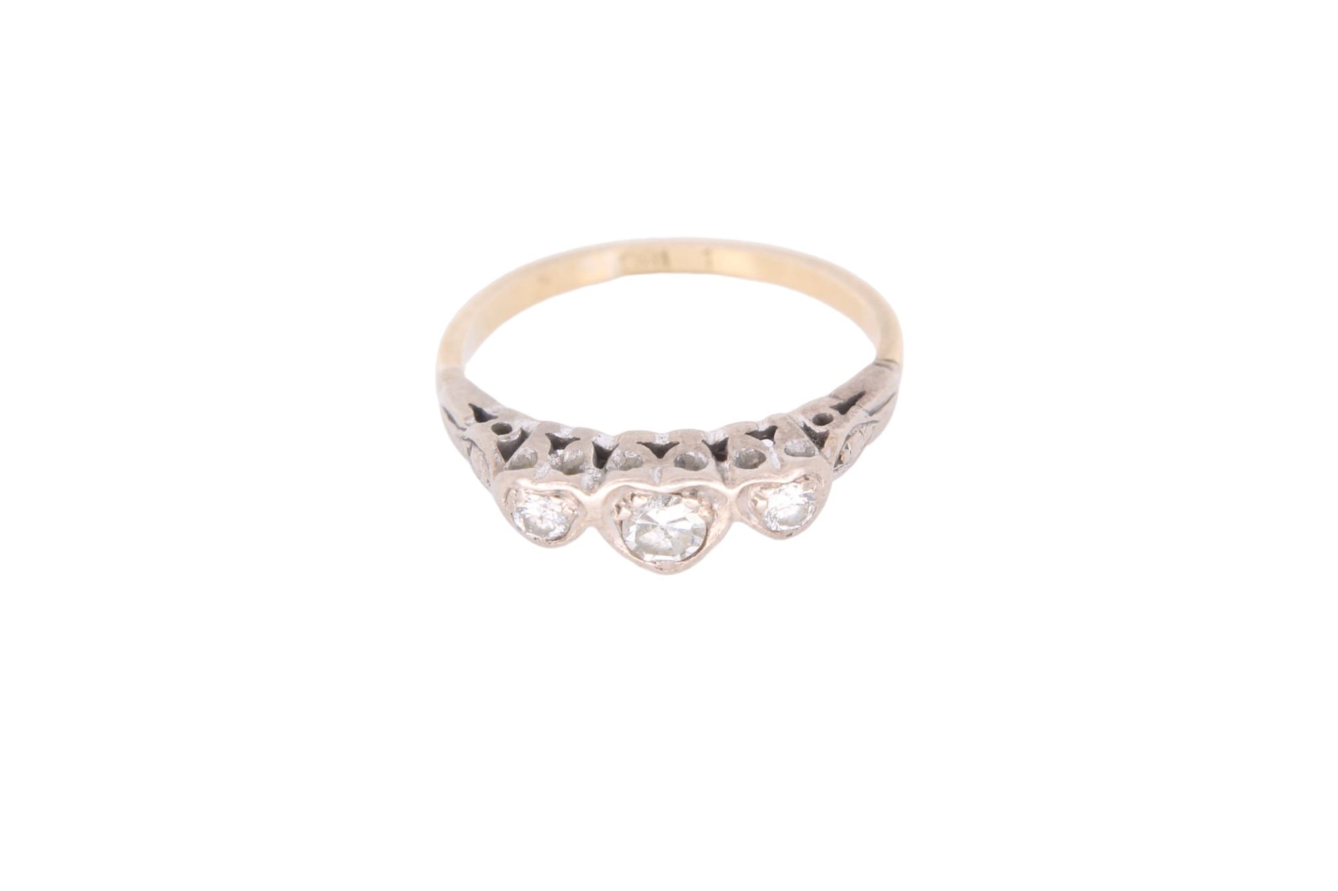 A very sweet Art Deco period 18ct gold, 3 stone diamond ring crafted in the 1920s.