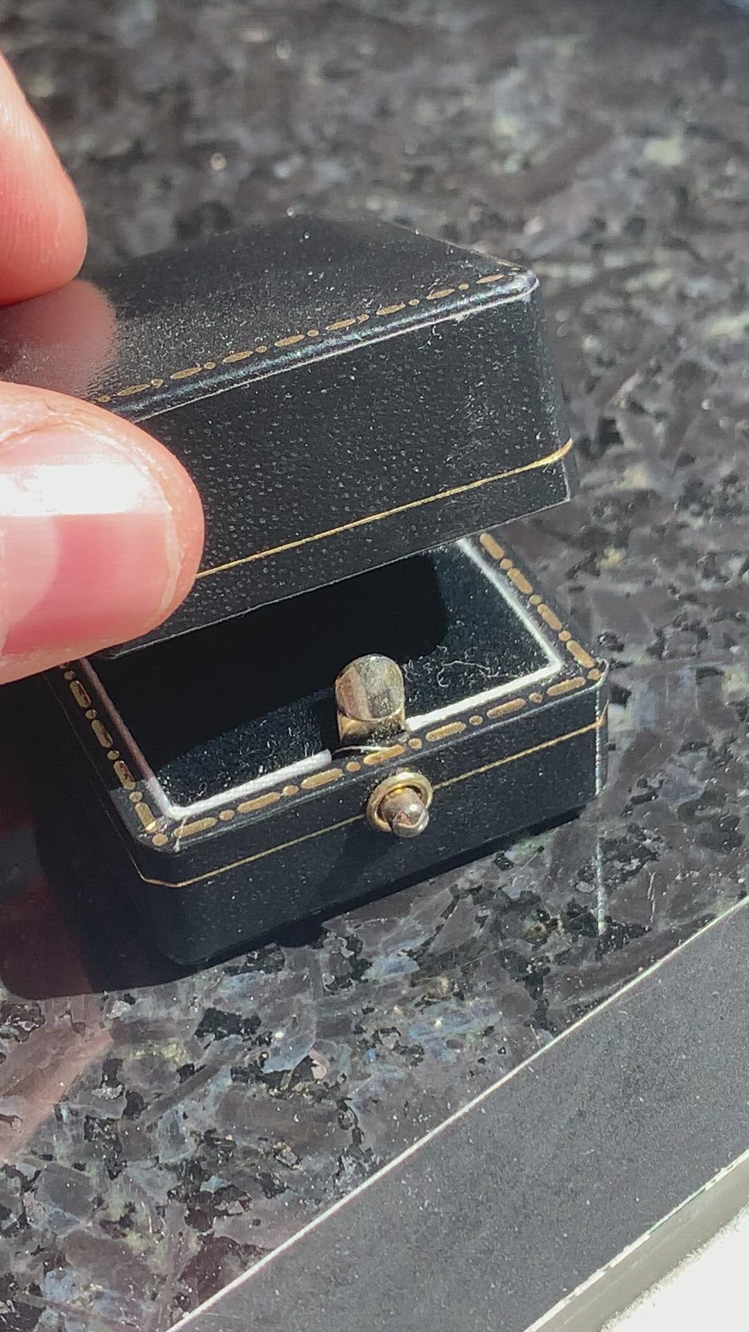 A beautiful Edwardian 18ct gold engagement ring consisting of 3 european cut diamonds set in Platinum. Marked 18ct and dates back to c.1910. The centre stone is .14cts and the two outer stones are .10cts, with a total of 0.34ct.