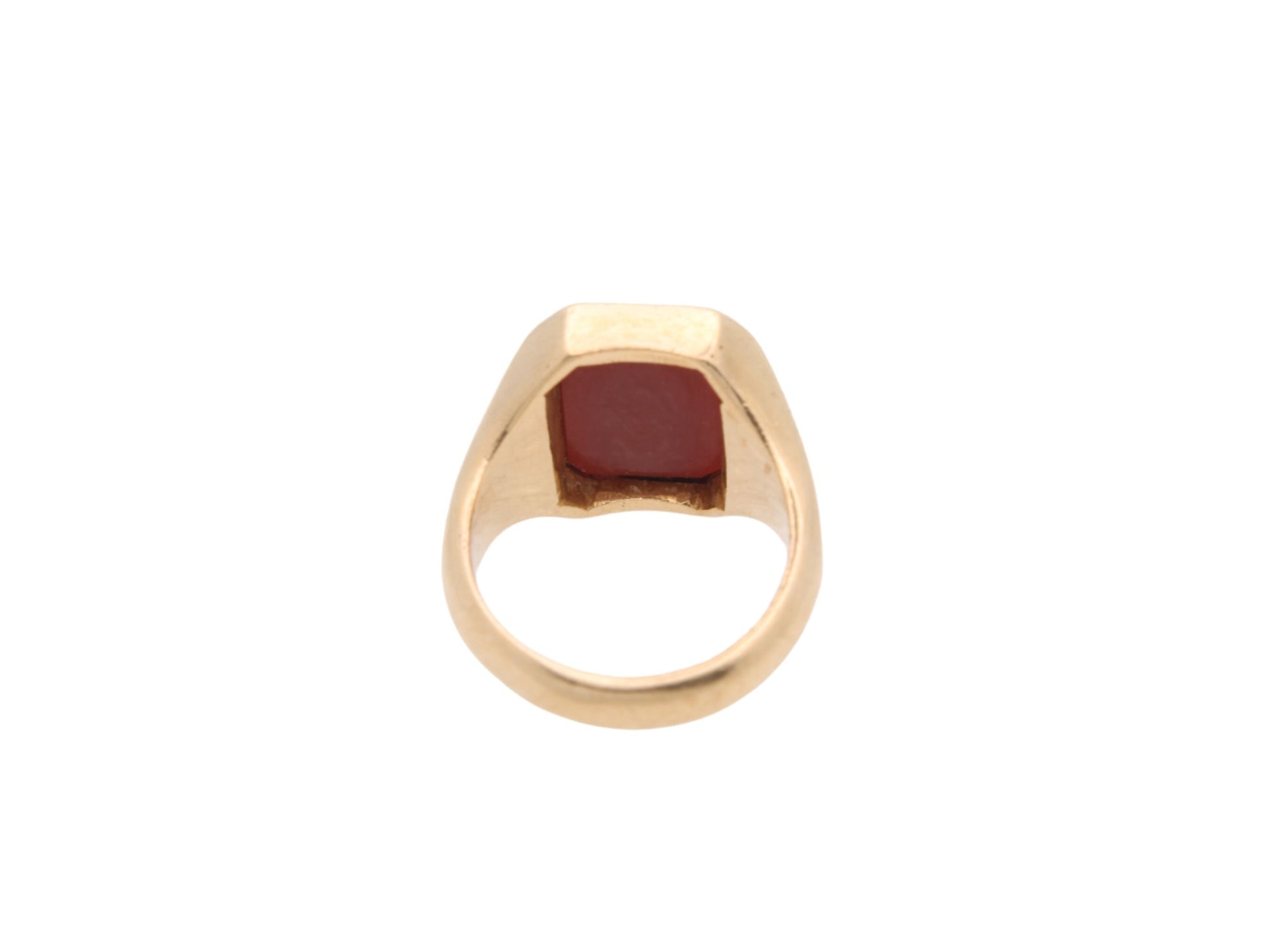 A vintage 18ct gold lilac intaglio coat of arms signet ring.