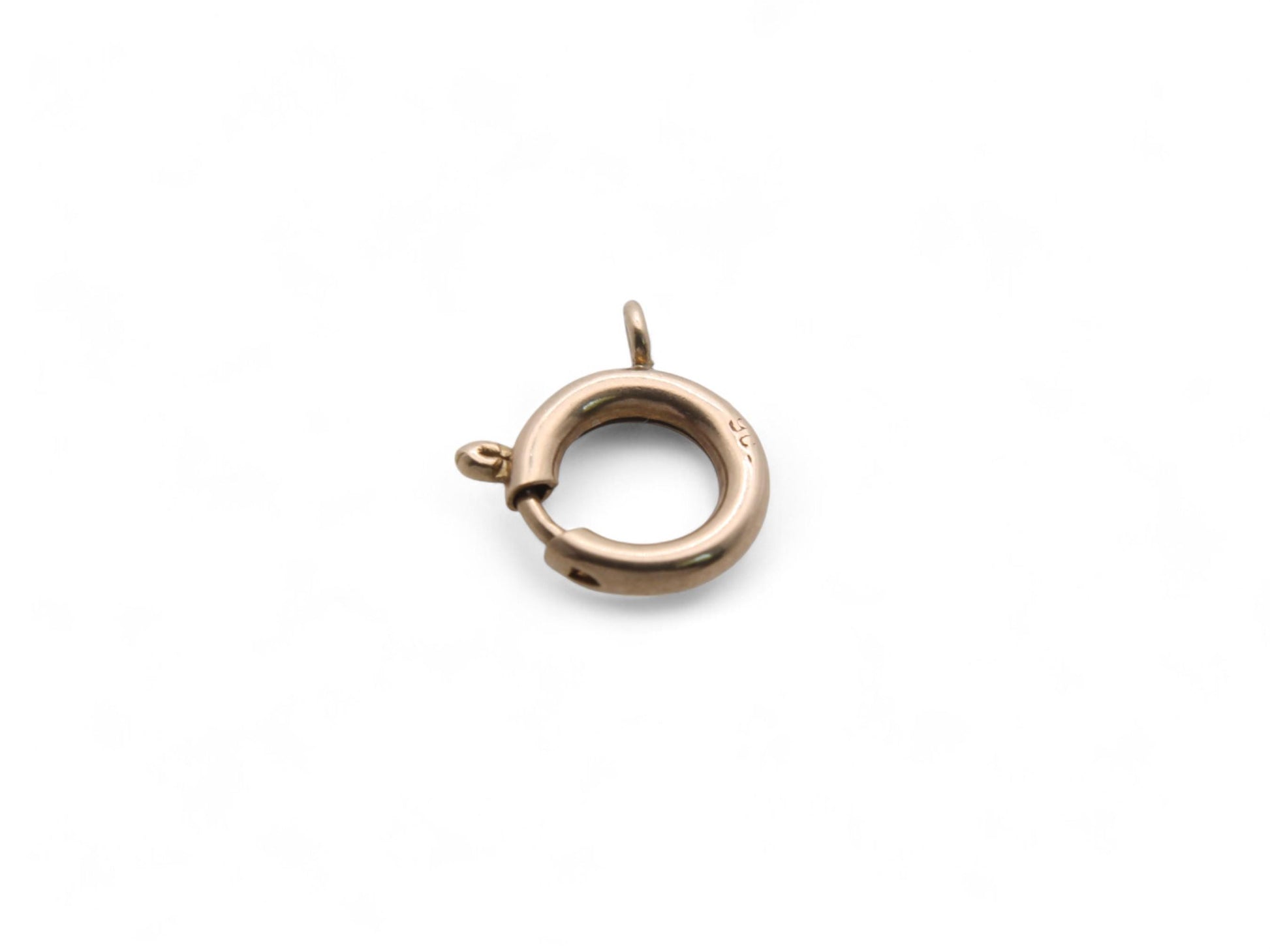 A classic vintage 9ct yellow gold bolt clasp dating to around 1970. This features a strong spring mechanism and timeless circular design, making it ideal for securing antique or vintage chains, charms, or lockets. A practical yet collectible jewellery finding for adding a touch of vintage gold to your pieces.