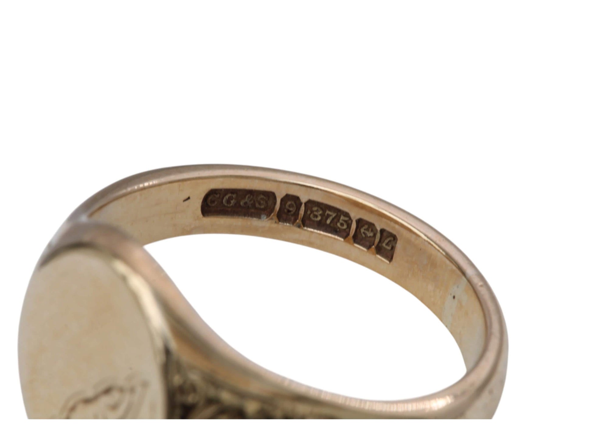 Vintage 9ct Gold Chased Signet Ring, 1960