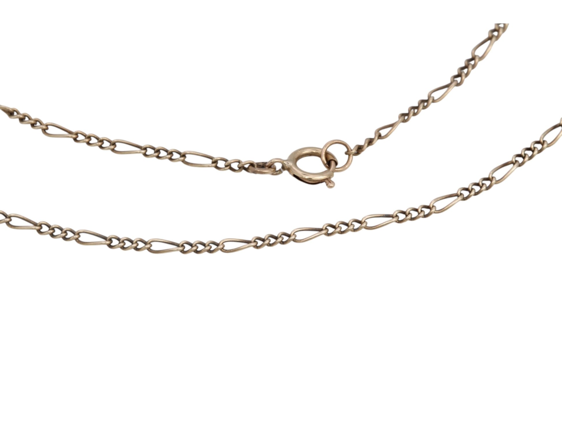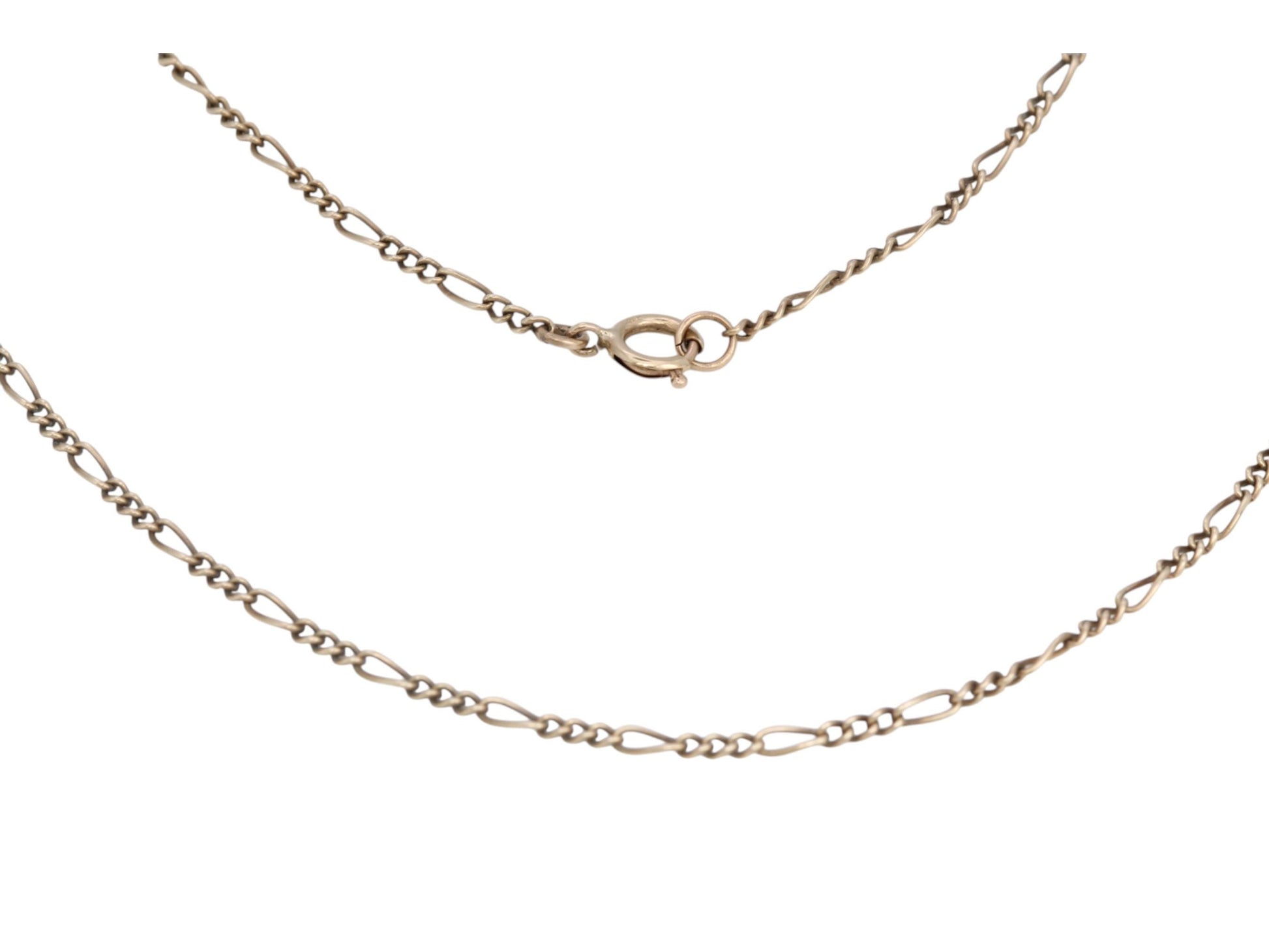 A timeless vintage 9ct gold Figaro link necklace, crafted with alternating short and long links in the classic Italian style. Dating to the 1970s, this elegant chain offers a sleek, versatile design perfect for everyday wear or layering. Made in rich yellow gold, it fastens securely with a bolt ring clasp. A staple piece for any vintage jewellery collection.