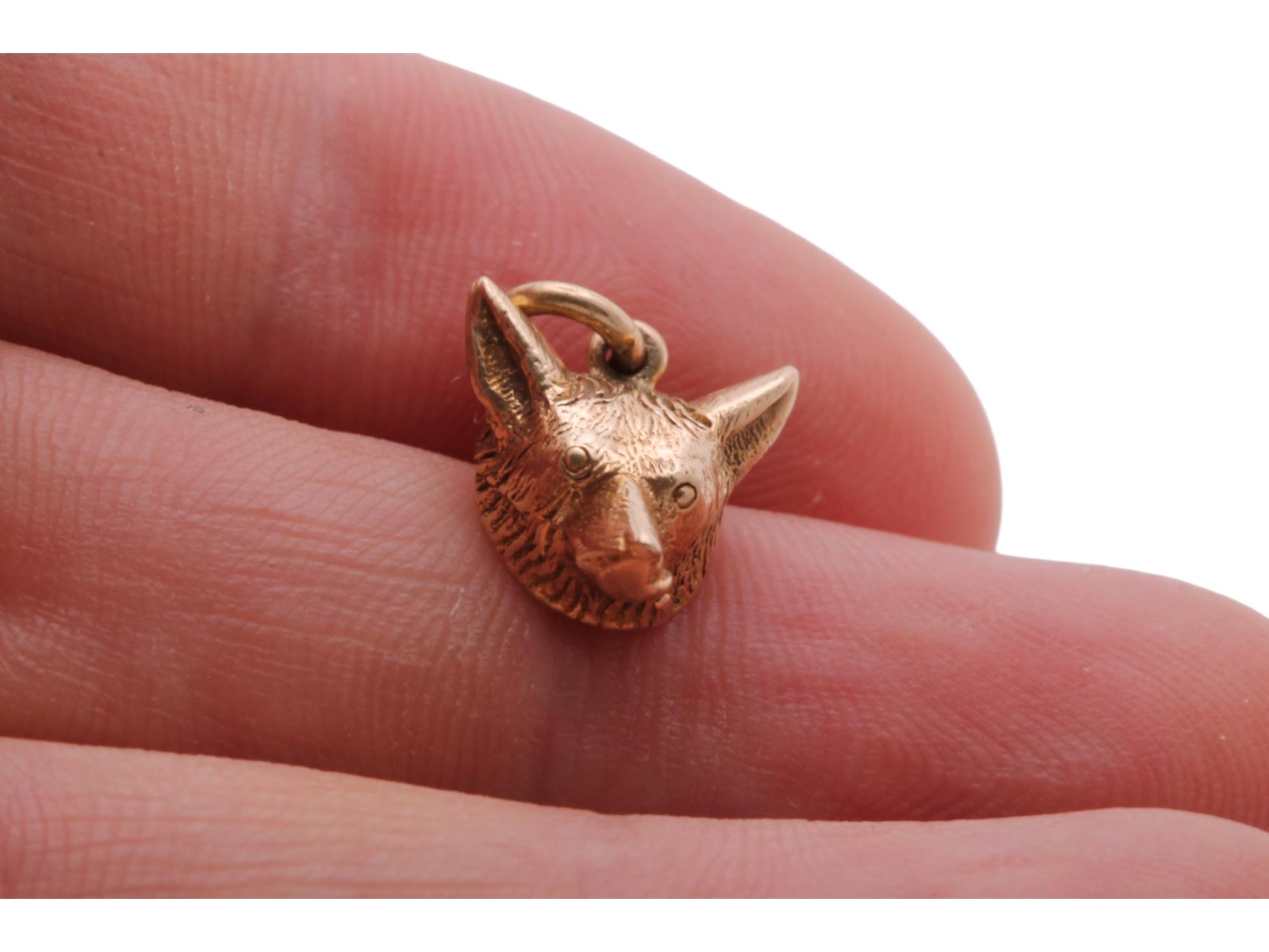 A charming vintage 9ct gold fox’s head charm dating to 1958. Beautifully detailed, the fox’s facial features are finely rendered, capturing its cunning character and timeless appeal. Crafted in solid 9ct yellow gold, this miniature piece adds a touch of vintage whimsy and symbolism—representing cleverness, adaptability, and independence.