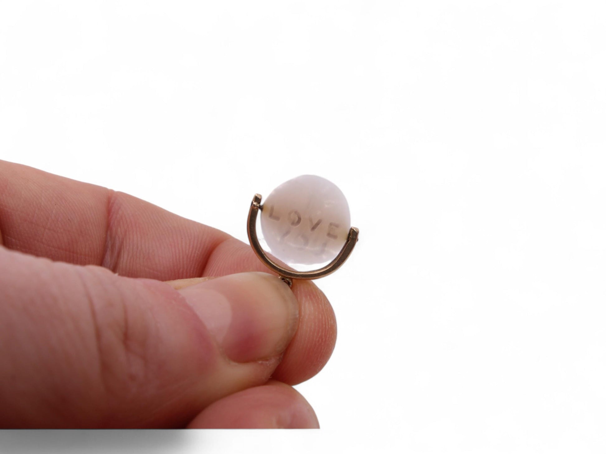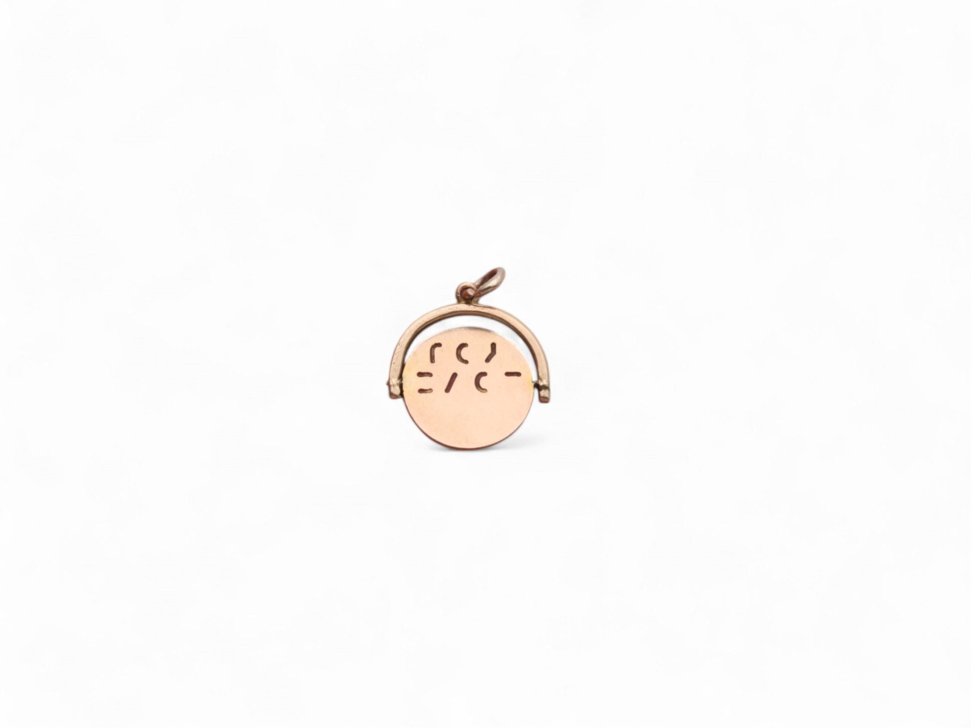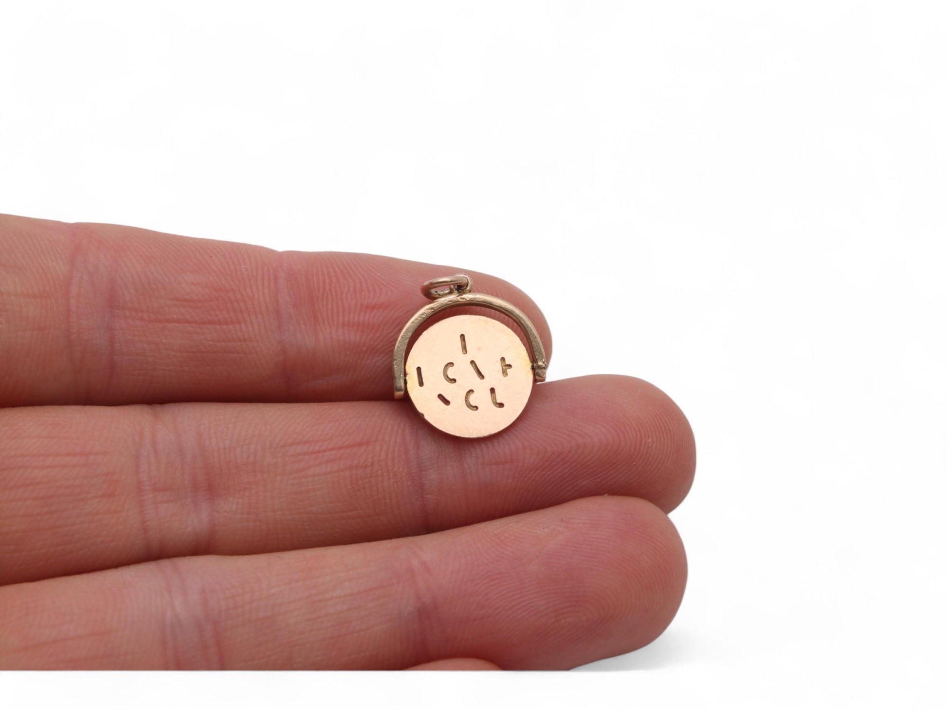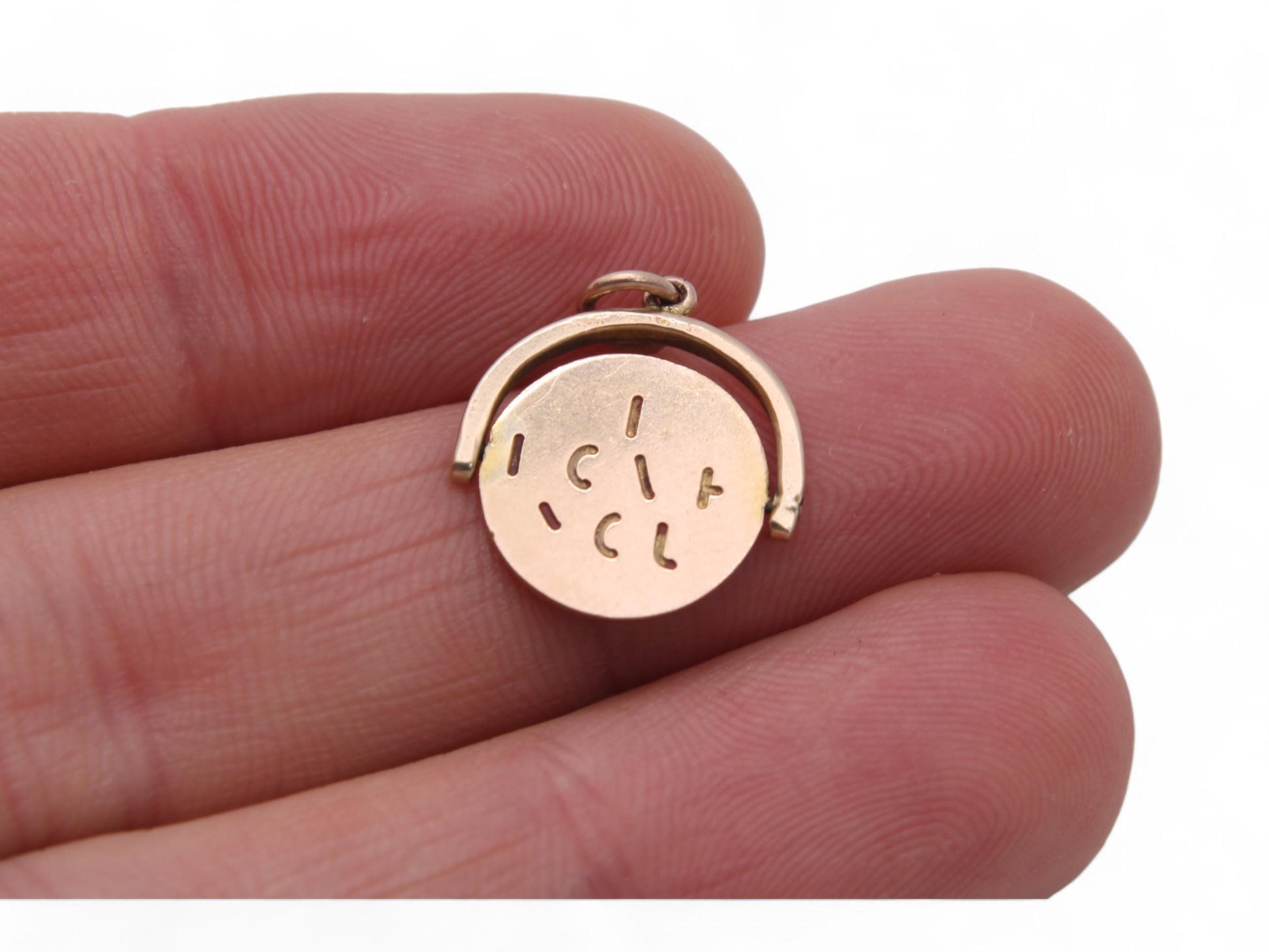 A lovely little 9ct yellow gold vintage spinning charm which doesn't look to be readable text until... it's spun! A quirky charm with a very sweet, secret message.
