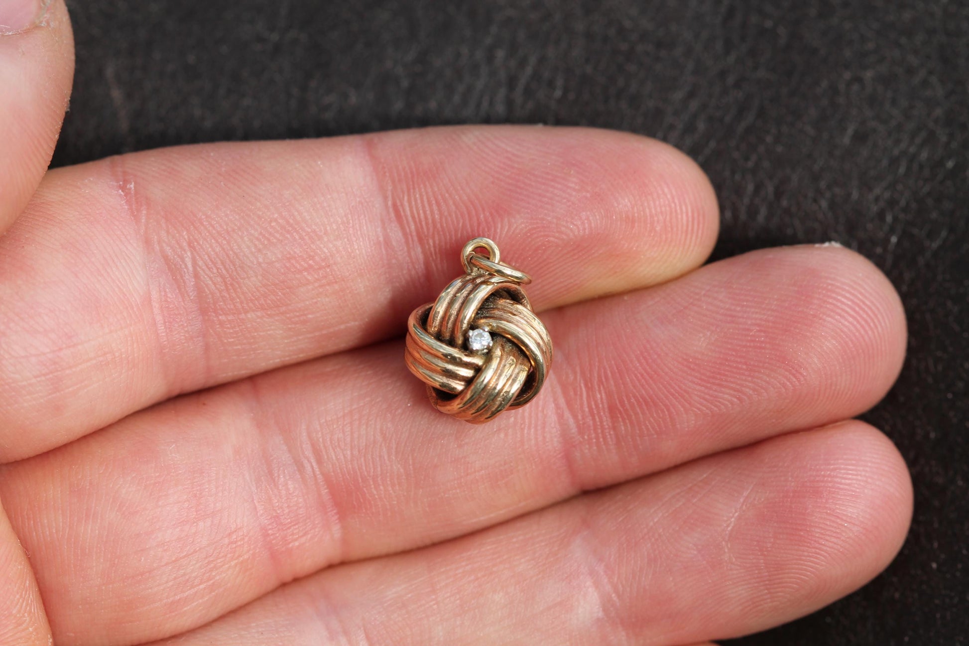 Vintage 9ct Gold Lovers Knot Diamond Pendant
