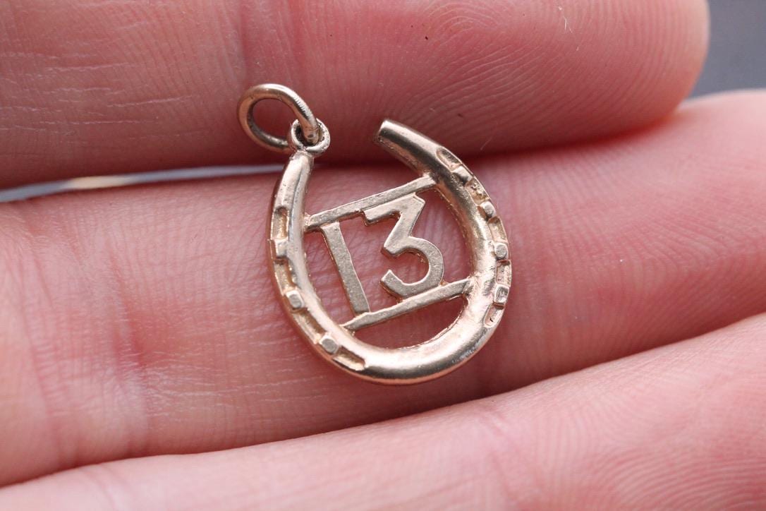 Vintage 9ct Gold Lucky Number 13 Horseshoe Charm Pendant