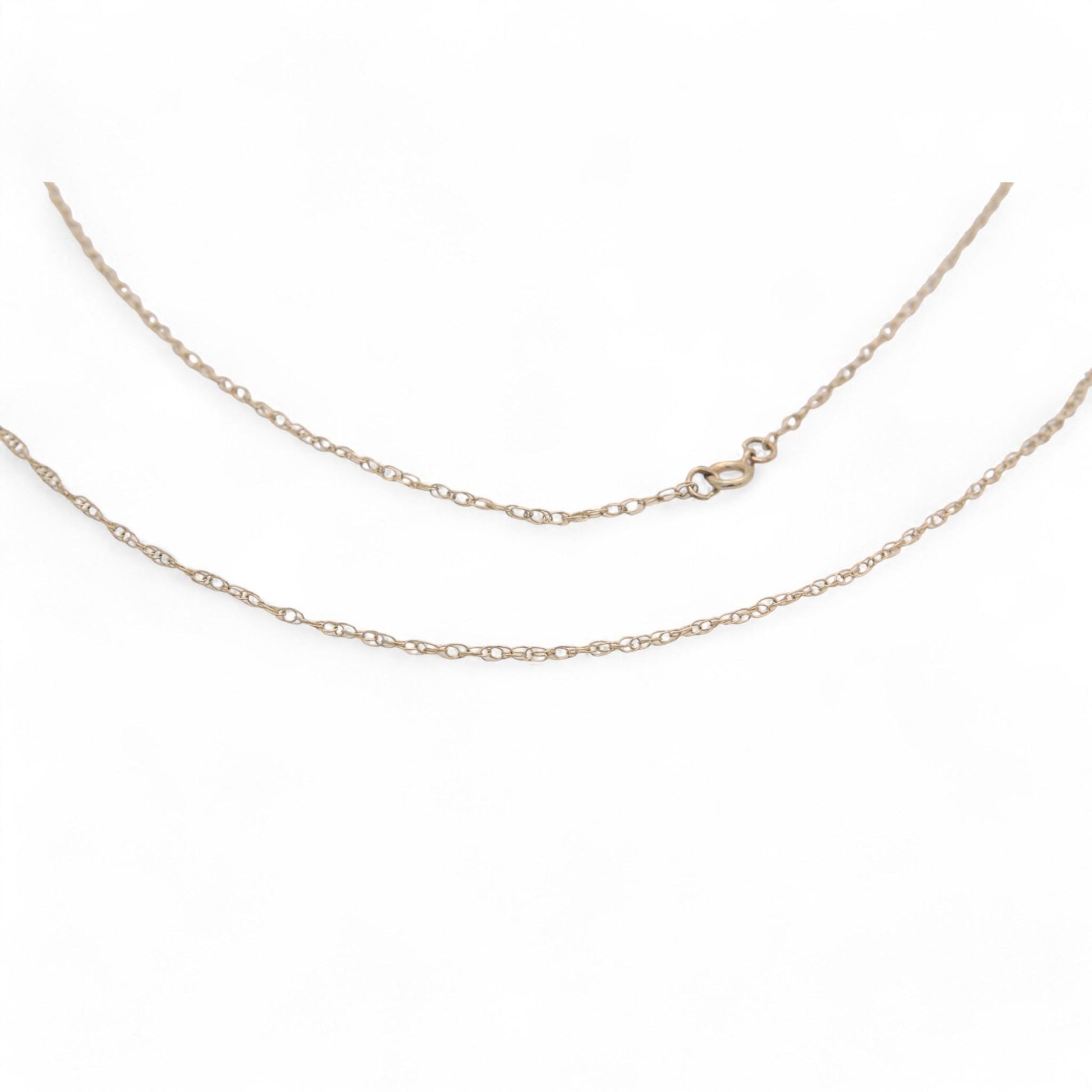 The Prince of Wales link is known for its intricate twisted design, offering a delicate shimmer and luxurious texture. Perfect for wearing alone for a minimal statement or paired with your favourite pendant.