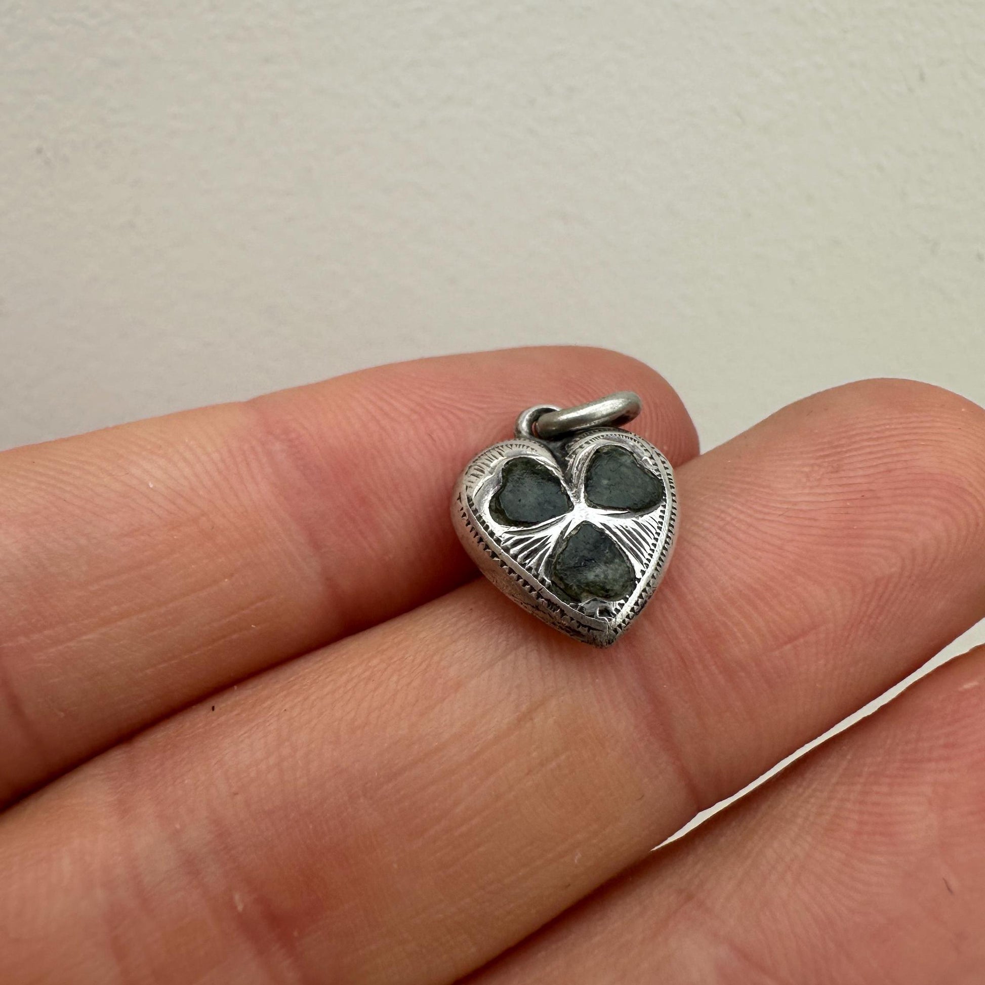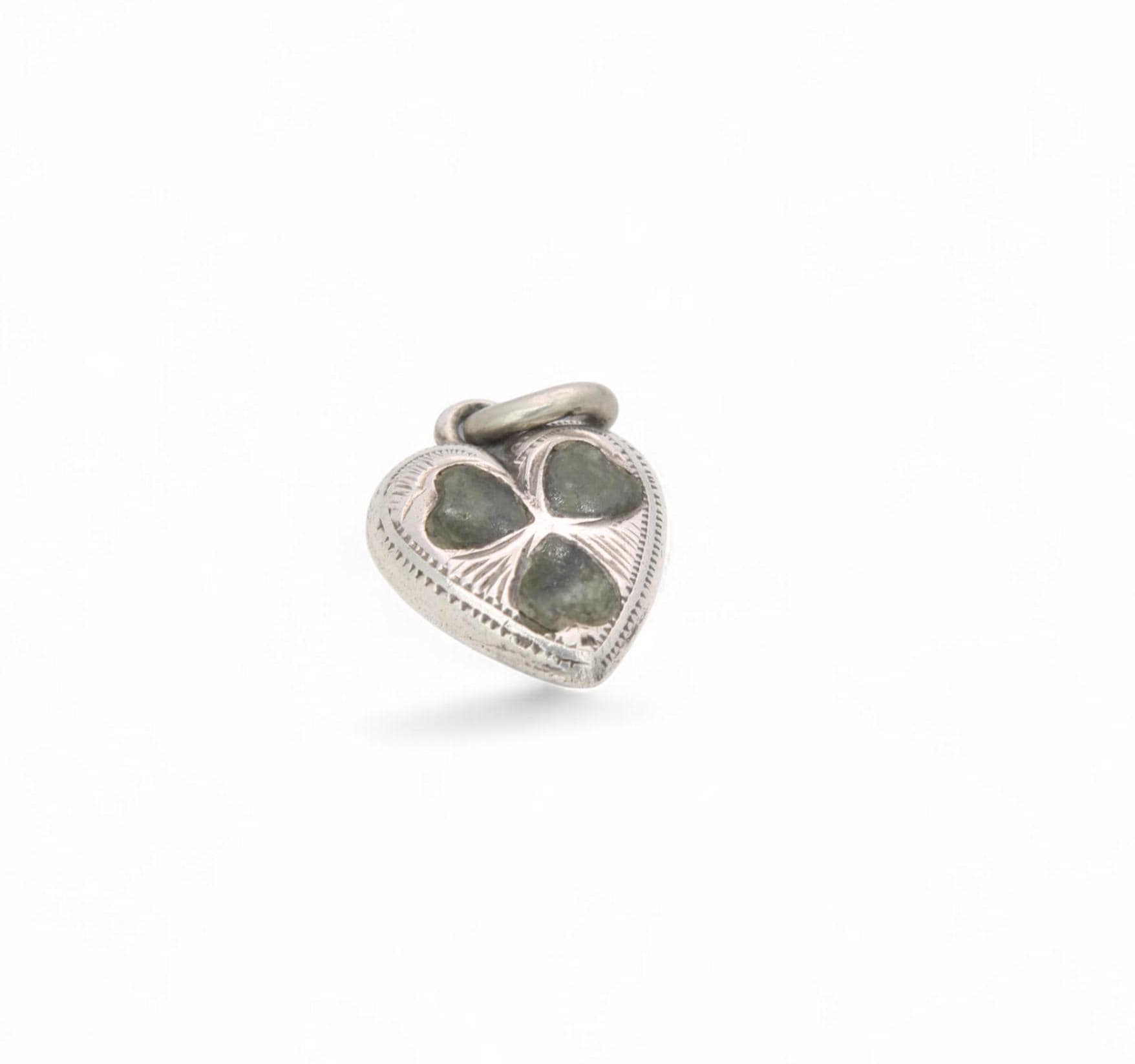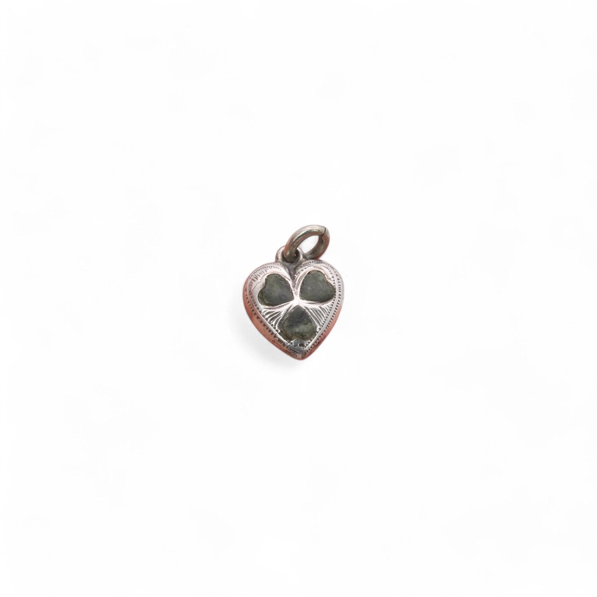 Vintage Sterling Silver Shamrock Connemara Heart Charm, 1939